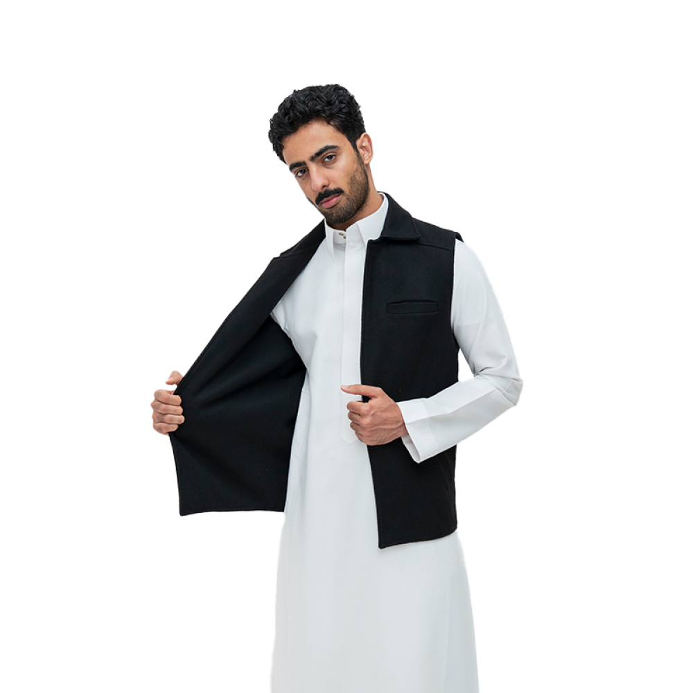 سديري جوخ باللون الأسود ، يعطيه أناقة بلمسة مختلفة