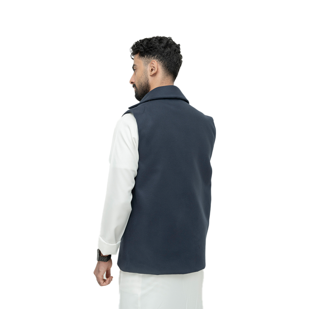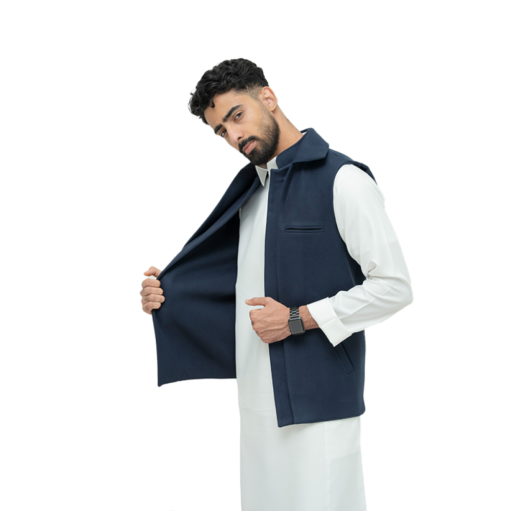 سديري جوخ باللون الكحلي ، يعطيه أناقة بلمسة مختلفة